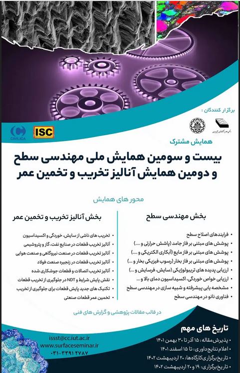 حوزه های تحت پوشش: علم مواد, علم مواد (عمومی) تاریخ برگزاری: ۱۹ اردیبهشت تا ۲۰ اردیبهشت ۱۴۰۲انجمن علمی برگزار کننده همایش: انجمن علوم و تکنولوژی سطح ایرانمحل برگزاری: استان اصفهان - شهر اصفهانوضعیت کنفرانس: در حال پذیرش مقالهپذیرش مقاله: ۱۴۰۱/۱۱/۳۰